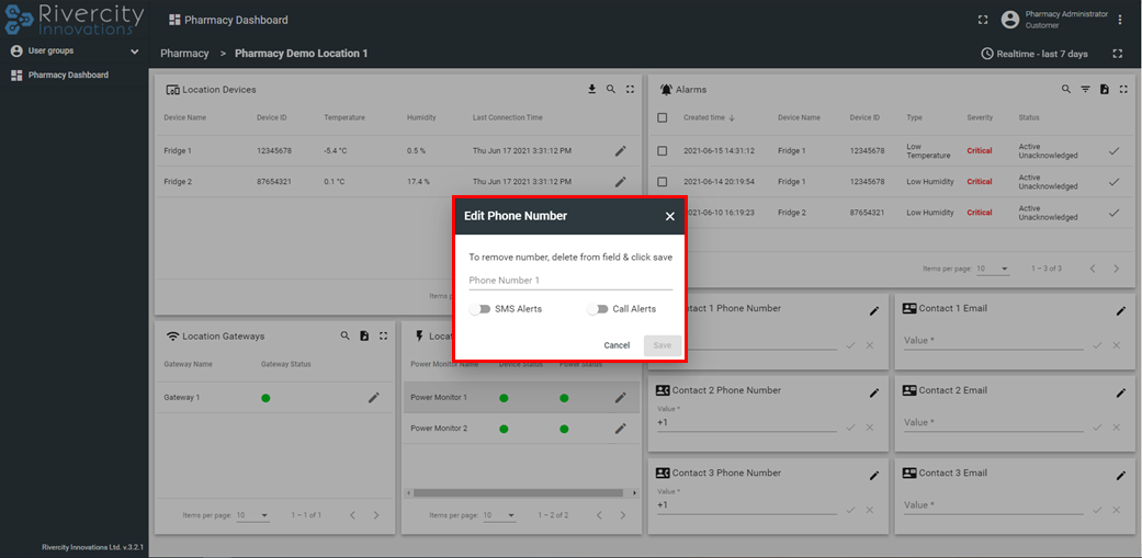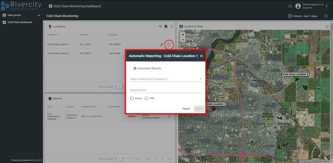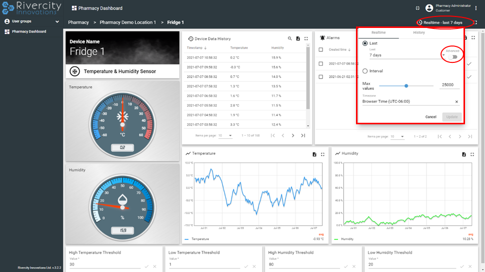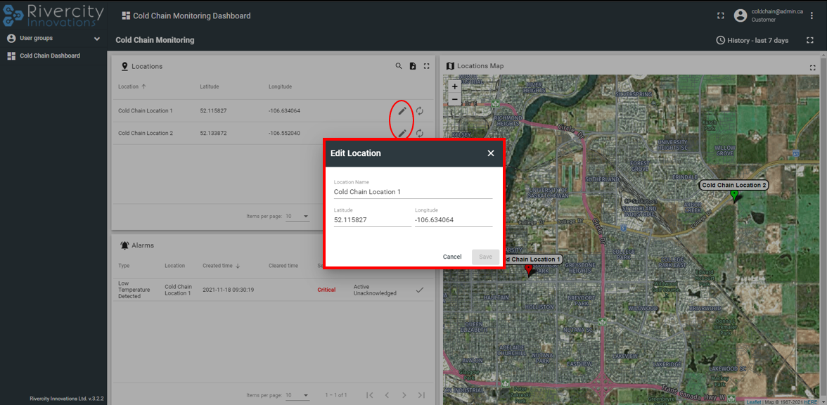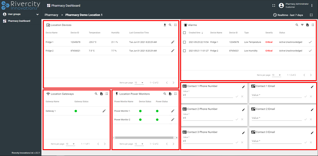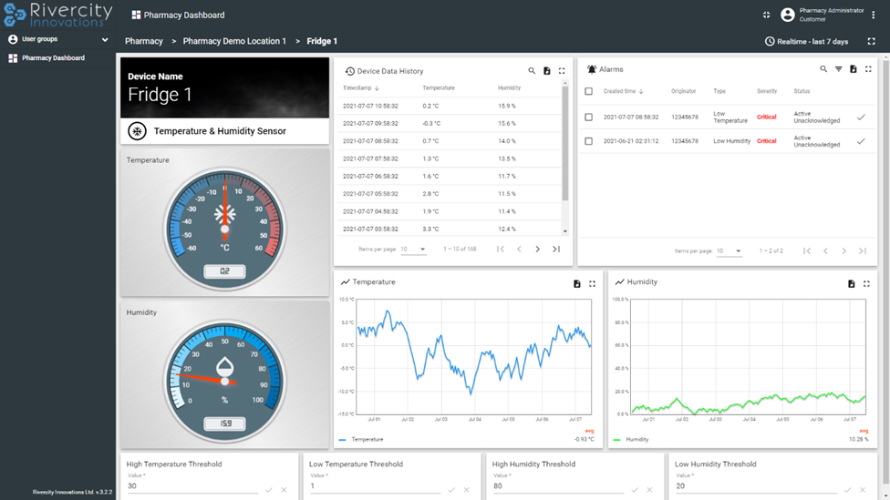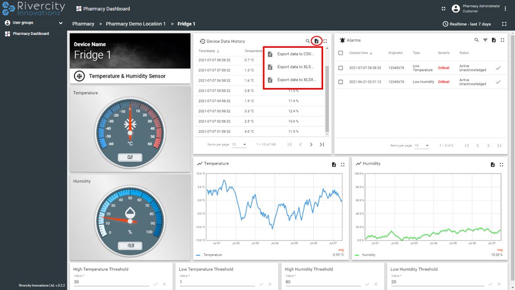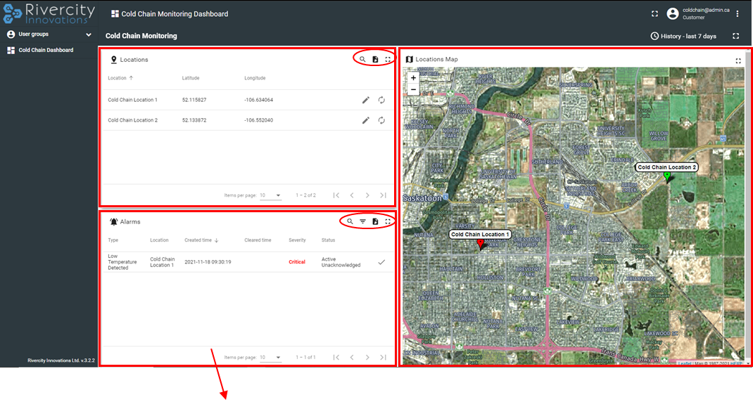 - The main difference between user functionality and administrator functionality is that the user will only be able to see the locations assigned to them, and they do not have access to change thresholds, export data, or edit anything on the dashboard.