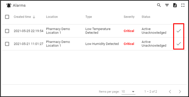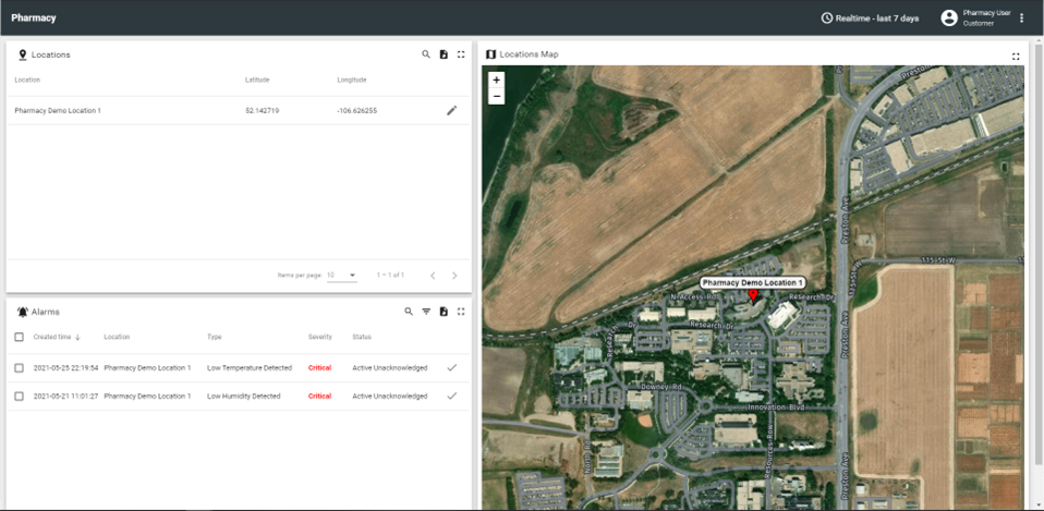 displayed. Clicking on the alarm will open that location’s dashboard.